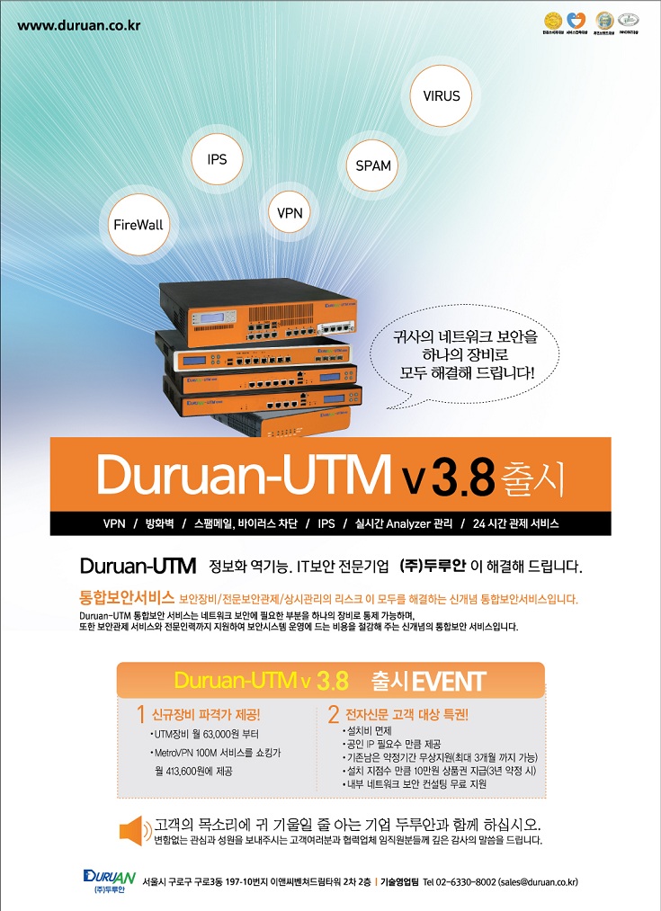 Duruan-UTM v3.8출시 기념 이벤트에 관한 정보는 전자신문 전면광고 또는 당사 홈페이지 PR/IR 페이지를 참고하여 주십시요.