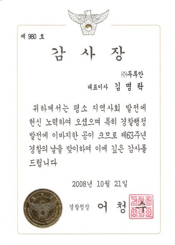 [공지]당사 경찰의 날 경찰청장 감사장 수상<br>당사는 63주년 경찰의 날 기념으로 지역사...
