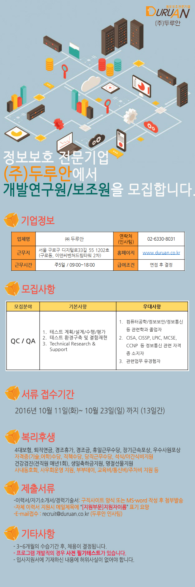 [채용공고] 보안프로그램 검증, QA, QC 연구원 및 연구보조원을 모집합니다.