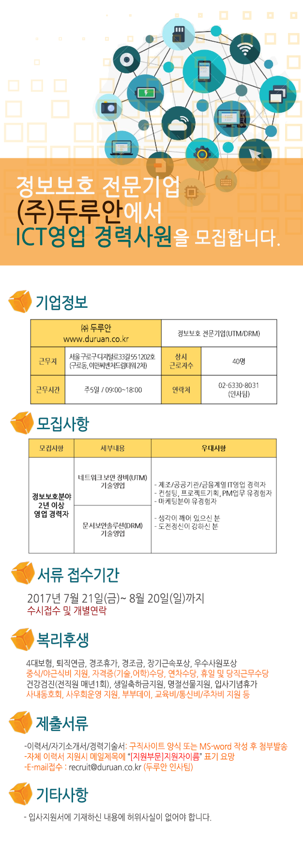 [채용공고] ICT 보안영업 경력직 모집