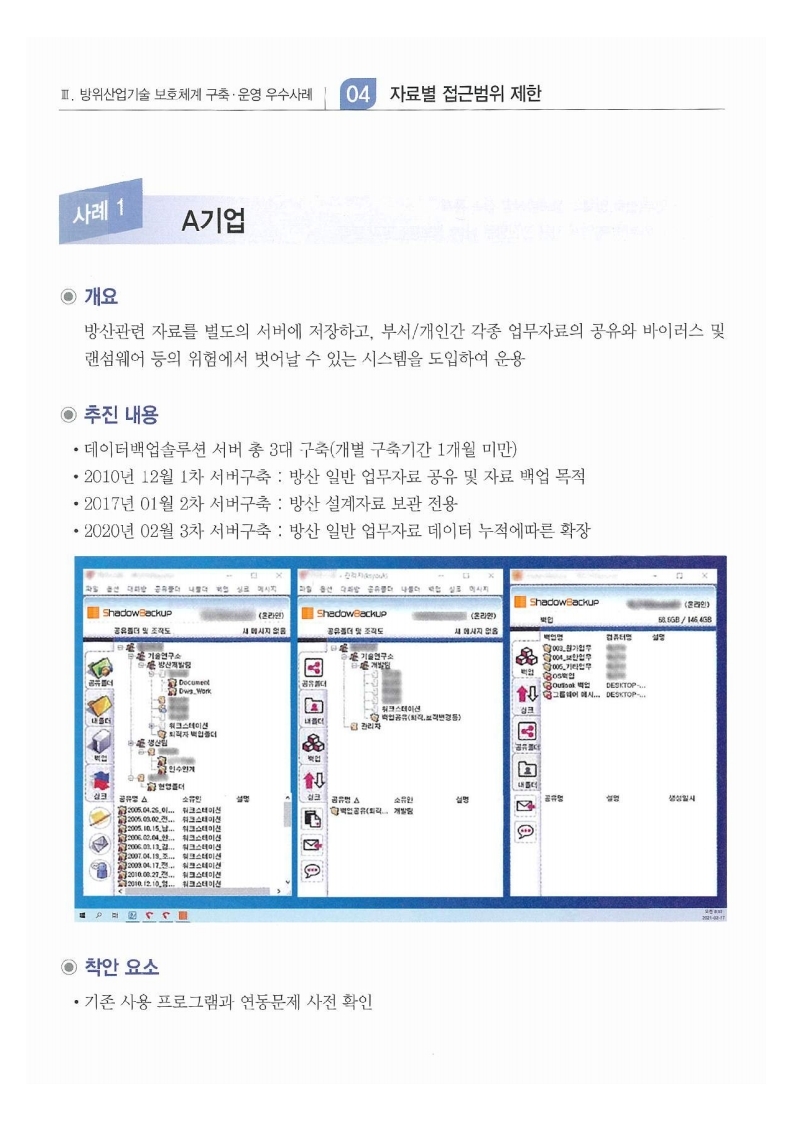 방위사업청 기술보호 구축운영 우수사례집_2021년_ShadowBackup_최종.pdf (424.9K)